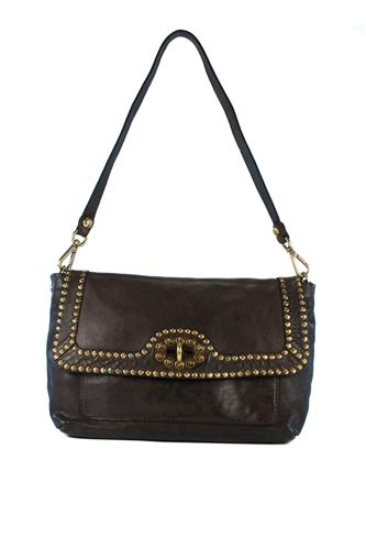 Borsa a Spalla Nadia Pelle Nera Borchie Ametista